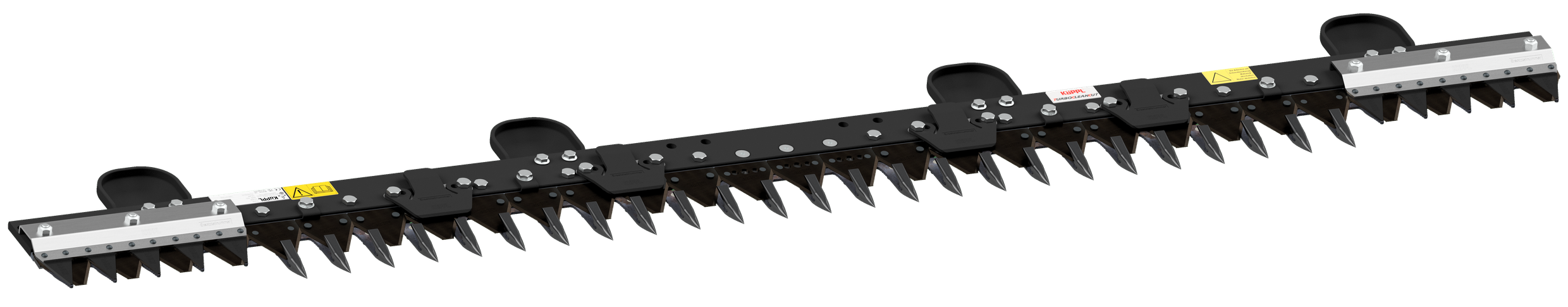 Entraînement professionnel à double lame par levier oscillant en exécution massive. Monté dans un bain d'huile, avec déflecteur d'herbe et tête de lame plate en boulons sphériques trempés.